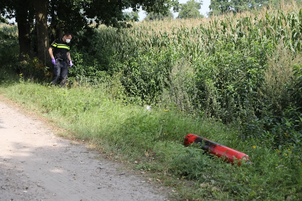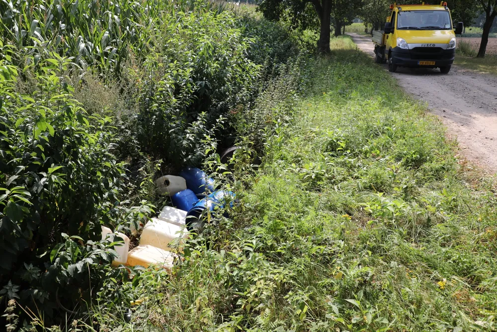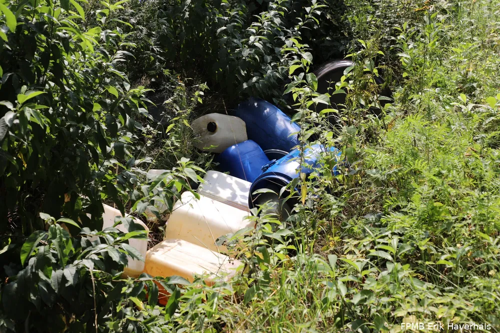 In een sloot langs de Veldstraat in Kaatsheuvel heeft de politie maandagmiddag een drugsdumping aangetroffen.
