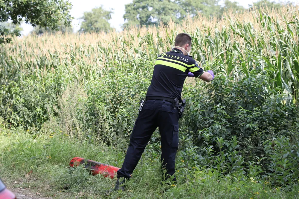 De spullen worden door specialisten uit de sloot gehaald en worden na sporenonderzoek vernietigd.