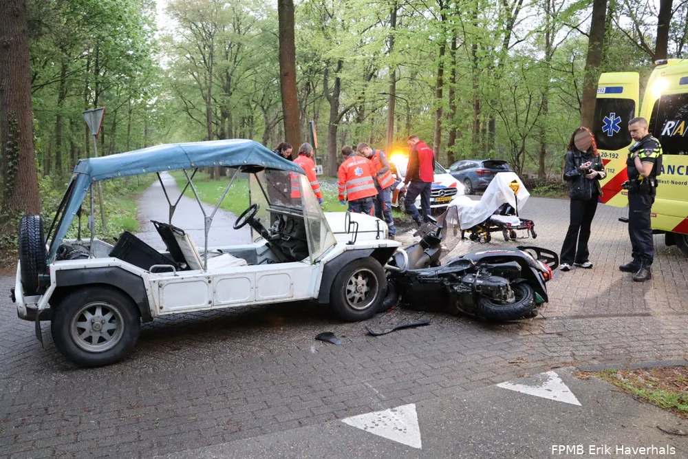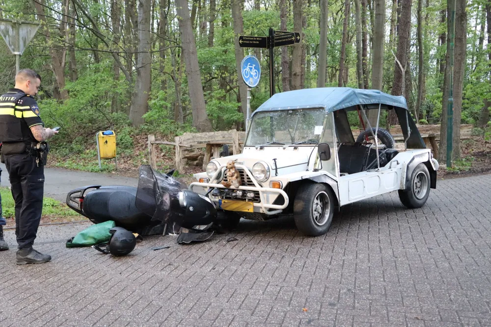 Het incident vond plaats op de kruising van de Bergstraat en de Blauwloop. De scooterrijder liep verwondingen op en werd met onbekende verwondingen naar het ziekenhuis vervoerd. De oorzaak van het ongeval is nog onbekend.