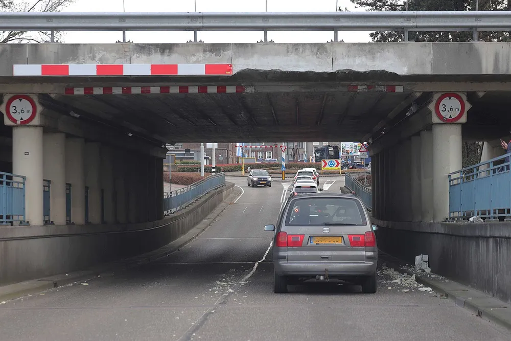 WAALWIJK - Vrijdagmiddag is omstreeks 16.45 uur een vrachtwagen tegen het beruchte viaduct aan de Hertog Janstraat in Waalwijk aangereden.