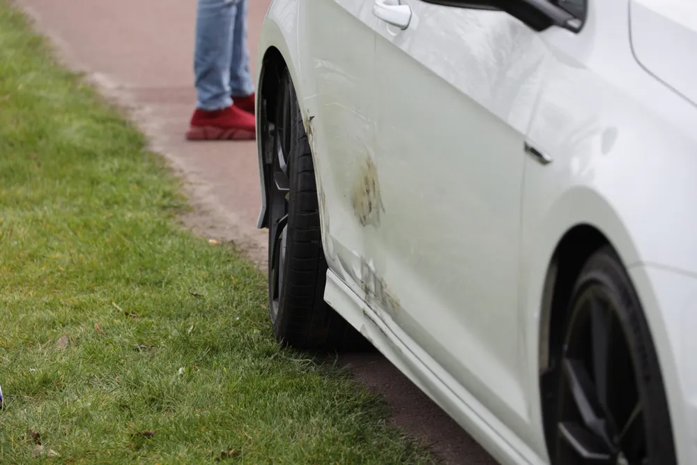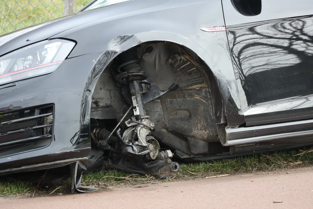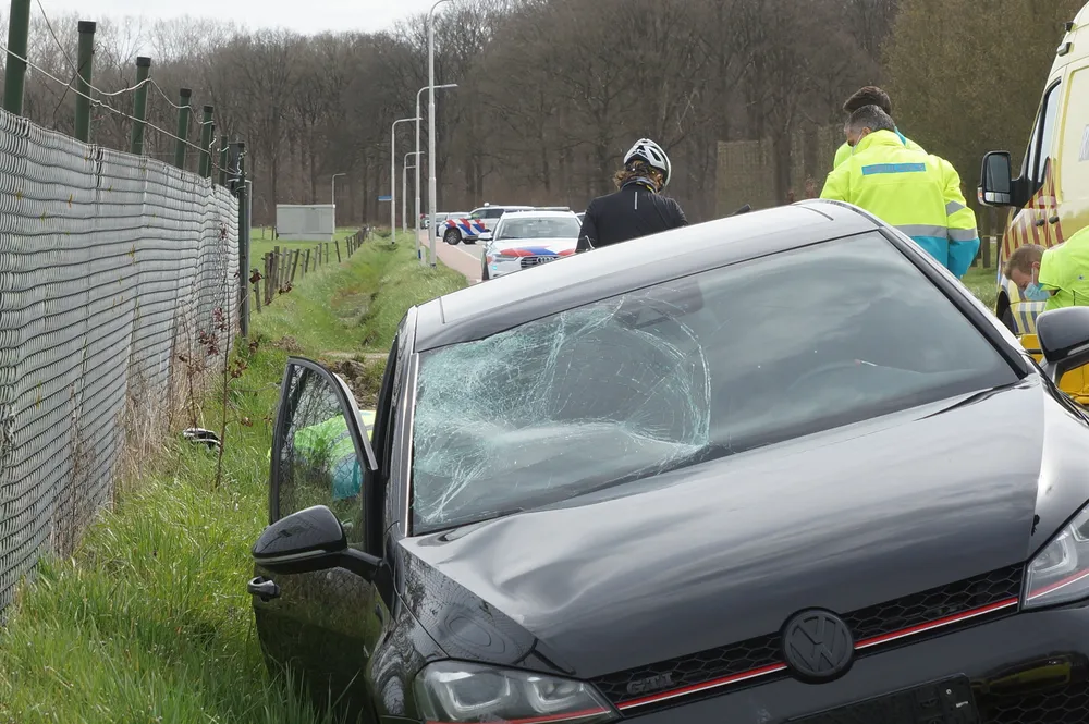 Bij het ongeluk waren twee Golf GTI's betrokken. Vermoedelijk wilde de een de ander inhalen en zagen ze zo de wielrenners over het hoofd. Het voorwiel van een auto ligt eraf en het ongeluk laat een flink spoor na op de weg. De fietsen staan aan de andere kant van het hek in een weiland.