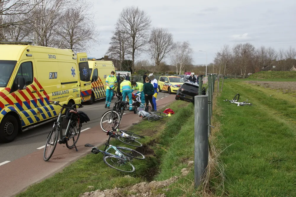 De twee wielrenners zijn voor medische behandeling naar het ziekenhuis gebracht. De twee bestuurders, een 22-jarige man uit Utrecht en een 28-jarige man uit Amsterdam, zijn aangehouden en zitten vast voor verhoor.