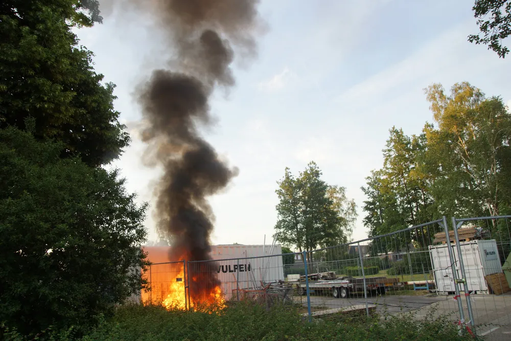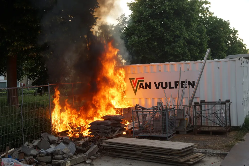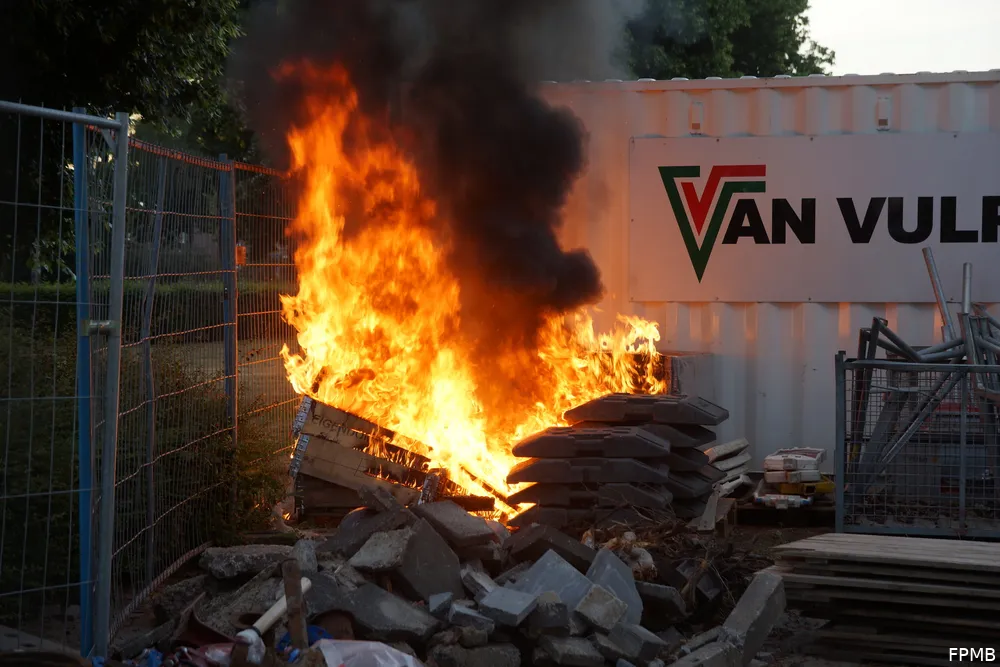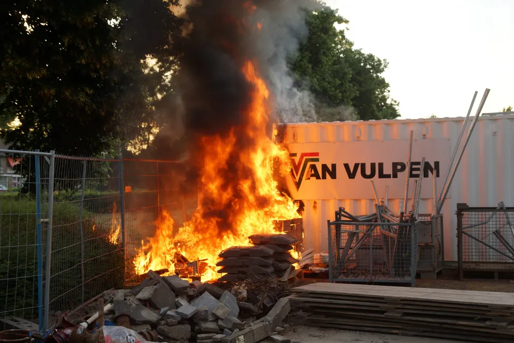 Rubberen voeten voor afzetborden en pallets stonden hierbij in brand. Bij de brand kwam veel rook vrij die goed te zien was. De brandweer kwam ter plaatse en bluste de brand. Een bouwcontainer van de aannemer raakte door de brand flink beschadigd. De politie kwam ook ter plaatse. Hoe de brand kon ontstaan is niet bekend.