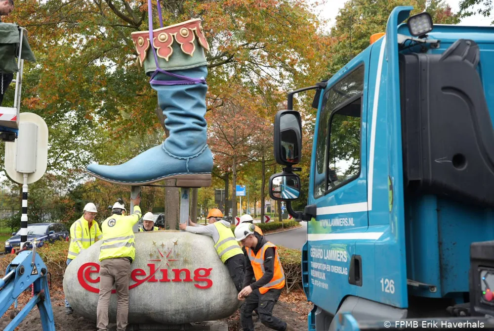 KAATSHEUVEL – Op woensdagmiddag 15 oktober heeft de Efteling een nieuw en opvallend herkenningspunt geplaatst aan de Europalaan, ter hoogte van de splitsing waar bezoekers linksaf het park inrijden en rechtdoor richting het dorp rijden. Op deze plek prijkt nu een reusachtige laars met bovenop het sprookjesfiguurtje Klein Duimpje.