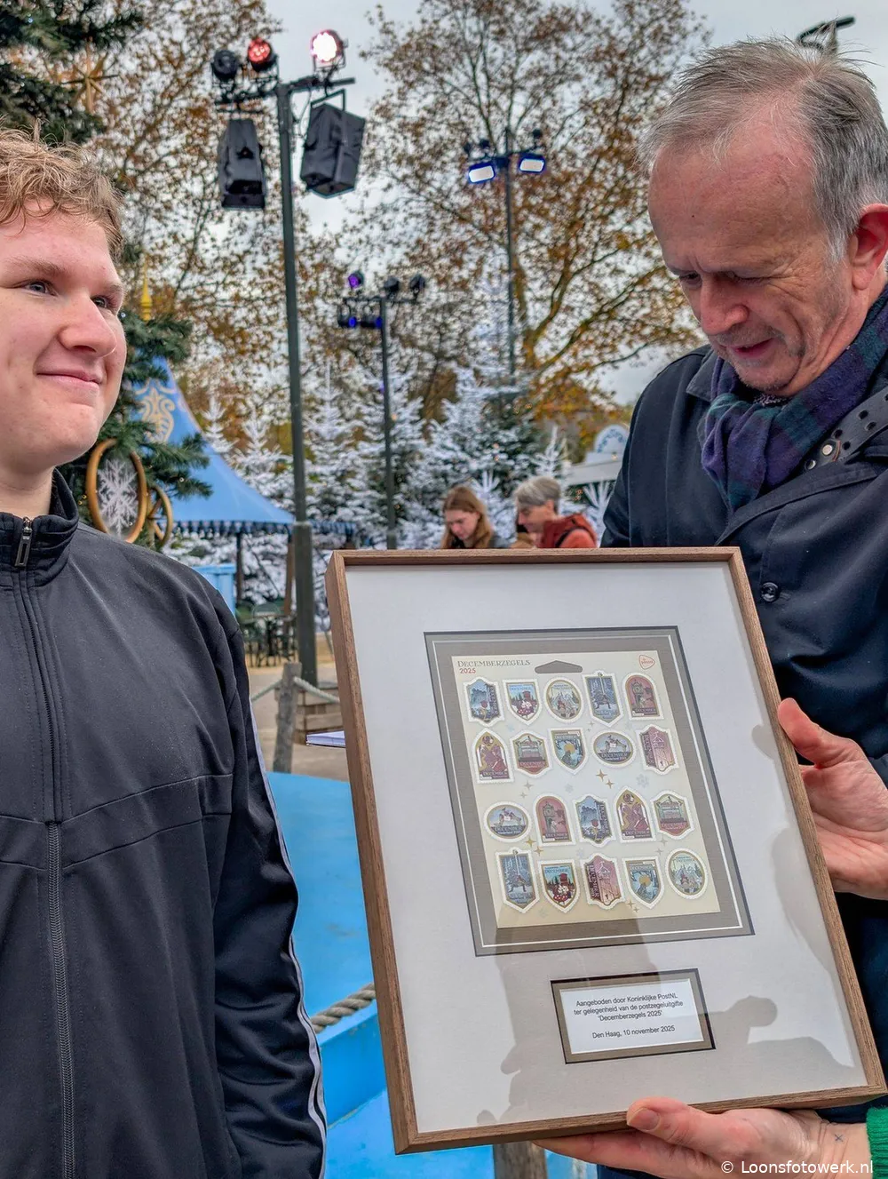 Fotograaf Jacques Bertens van Loonsfotowerk was namens Loonopzand.nieuws.nl aanwezig bij de onthulling. Hij sprak in het kantoor van Ravelijn met ontwerper Sander de Bruijn, die eerder attracties als Baron 1898 en Raveleijn ontwierp. Daarna legde hij de onthulling bij de winterijsbaan vast, gevolgd door een unieke ronde door het Sprookjesbos om de inspiratie achter de zegels te fotograferen — zonder andere bezoekers in het park.