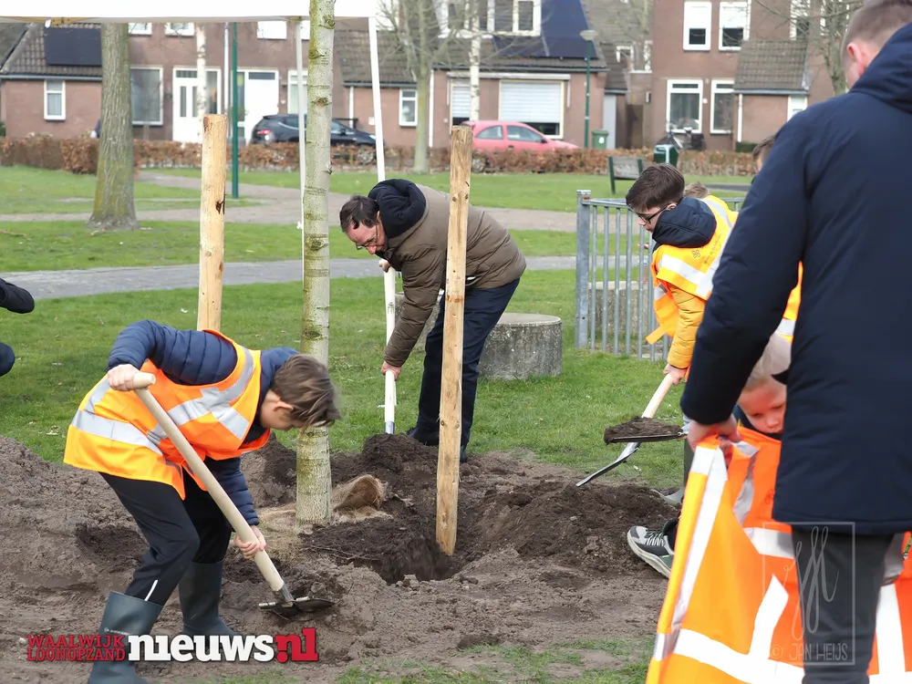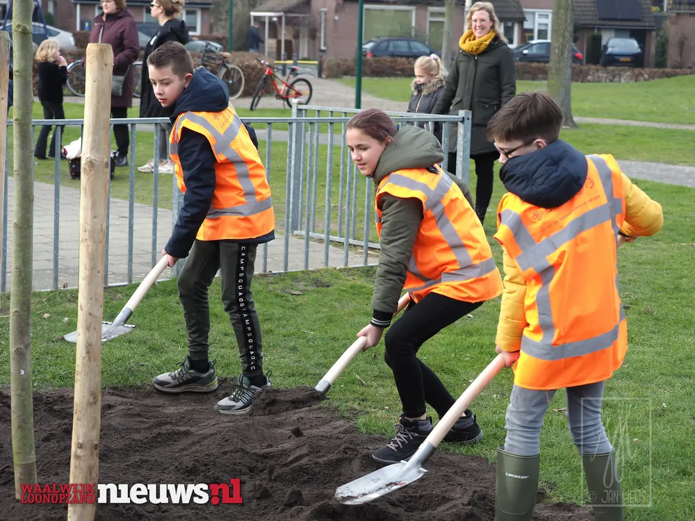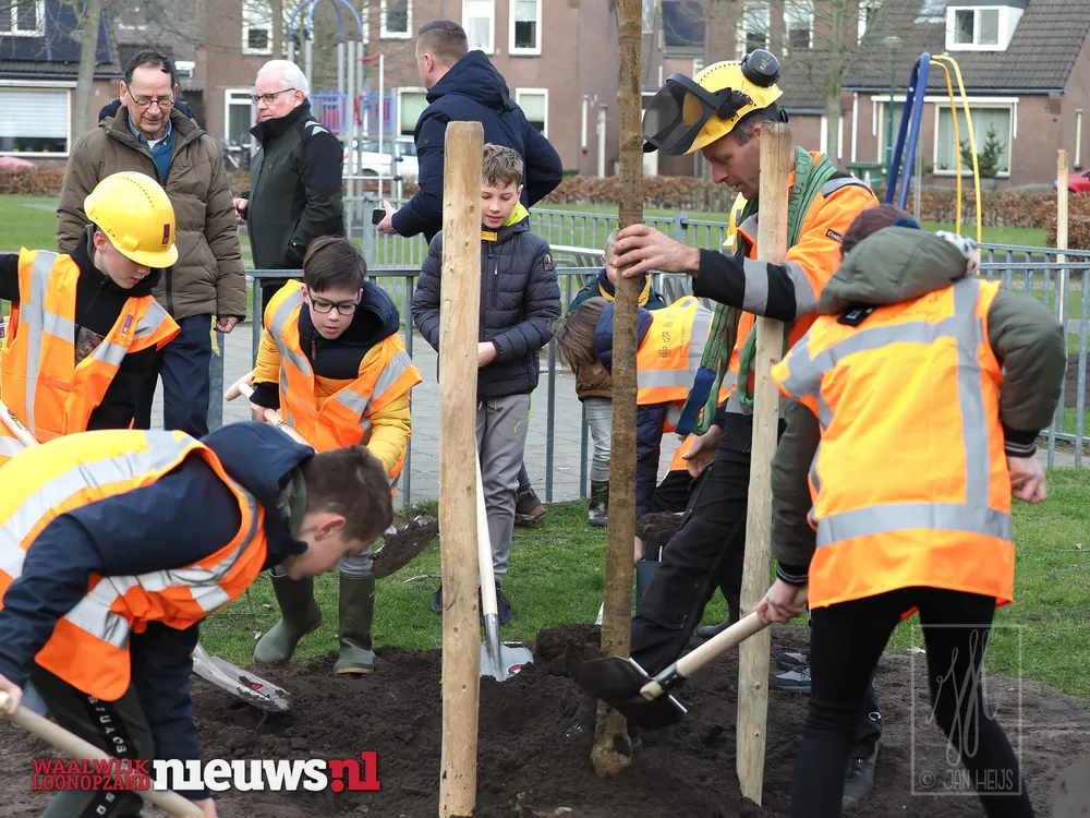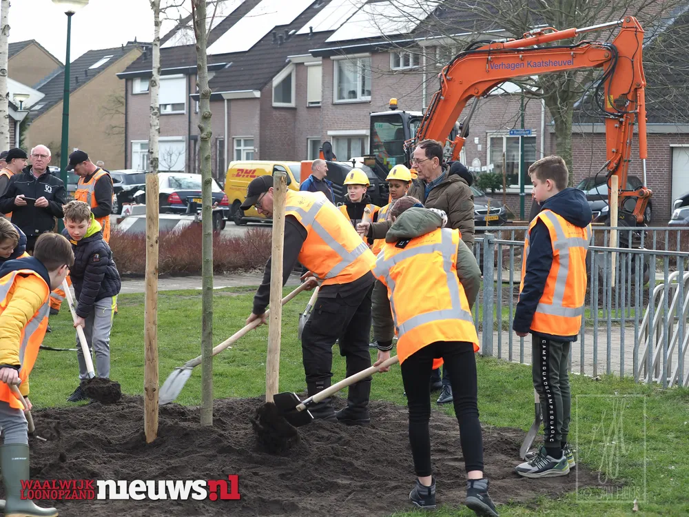Woensdagmiddag 15 februari ging hij samen met 6 kinderraadsleden aan de slag aan de Leemkuilen in Kaatsheuvel. Voorzien van oude schoenen of laarzen, veiligheidshesjes en natuurlijk een goede schep, zetten ze samen de nieuwe bomen in de grond. Na het harde werk konden de kinderraadsleden genieten van een glaasje ranja of chocolademelk. Dank aan deze 6 kanjers! Door deze bomen te planten helpen we hittestress te voorkomen en zorgen we voor meer biodiversiteit in onze gemeente.