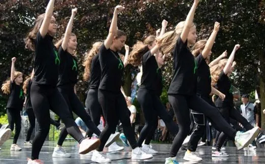 Musicalvereniging Djemm! zorgt voor een wervelend optreden. Dansers van het Kunstencentrum Waalwijk nemen de toeschouwers mee in een ‘Schoenendans”