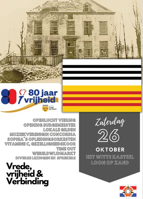 Op zaterdag 26 oktober vieren we dat de Gemeente Loon op Zand 80 jaar geleden bevrijd werd. Op het terrein van Landgoedfair “Het Witte Kasteel” presenteert Stichting Oranjevieringen in de Gemeente Loon op Zand een verbindend programma waarin vrede en vrijheid centraal staan.