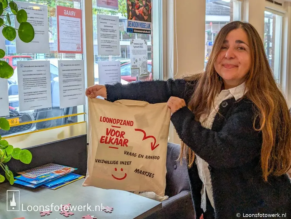 Iedere bezoeker kreeg bij vertrek een goodiebag van Loonopzand voor elkaar, als dank voor hun komst. Daarmee werd het ontmoetingsmoment niet alleen persoonlijk, maar ook een beetje feestelijk.