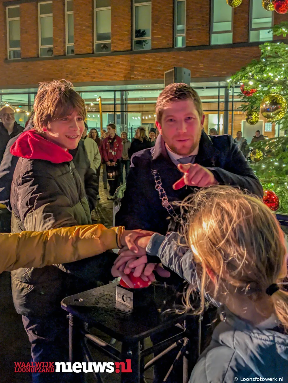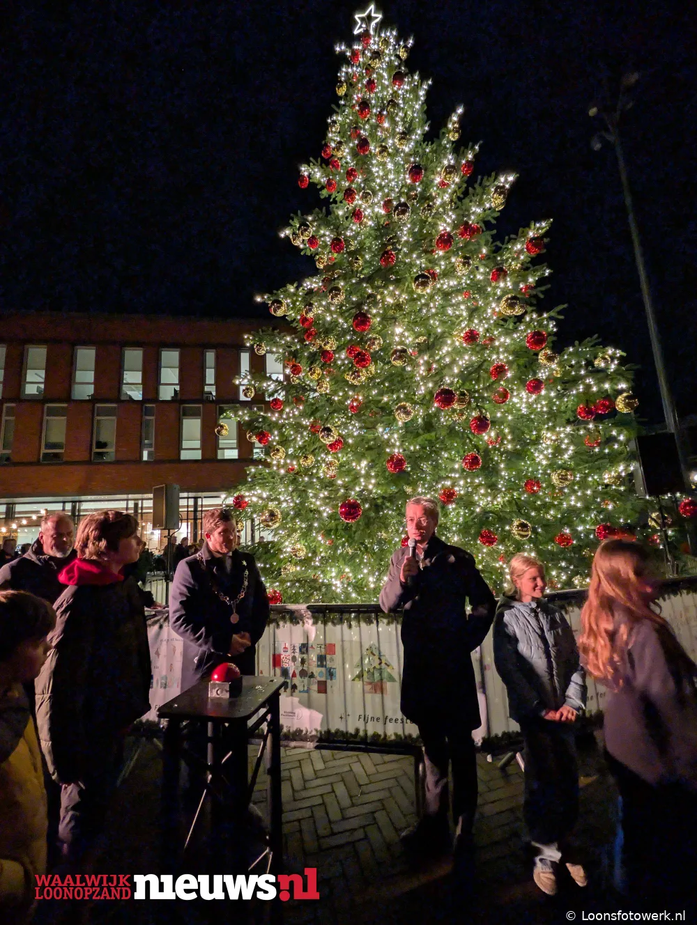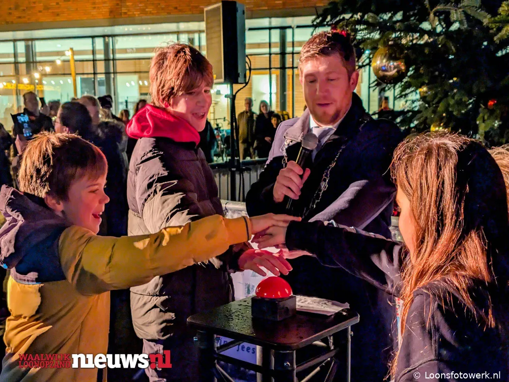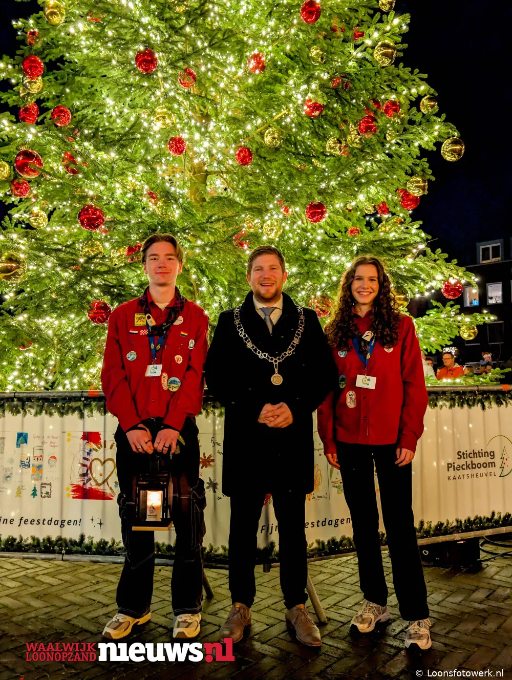 KAATSHEUVEL – De lichtjes van de grote Pieckboom op het Anton Pieckplein zijn maandag feestelijk ontstoken. Burgemeester Davy Jansen en vier leden van de jeugdraad drukten samen op een grote rode knop om de kerstboom te laten schitteren. De boom staat er voor de zevende keer en vormt inmiddels een vaste traditie in Kaatsheuvel.
