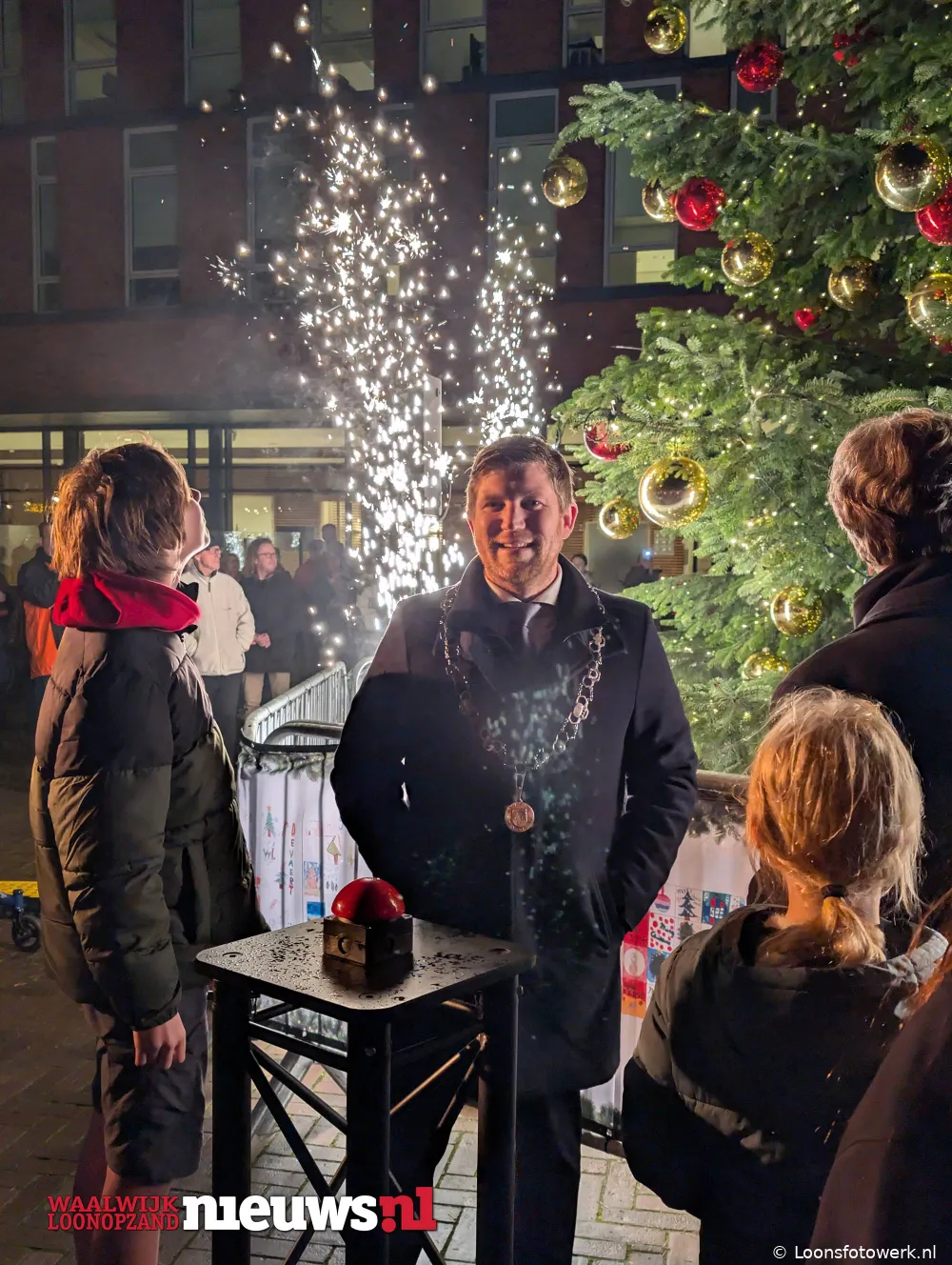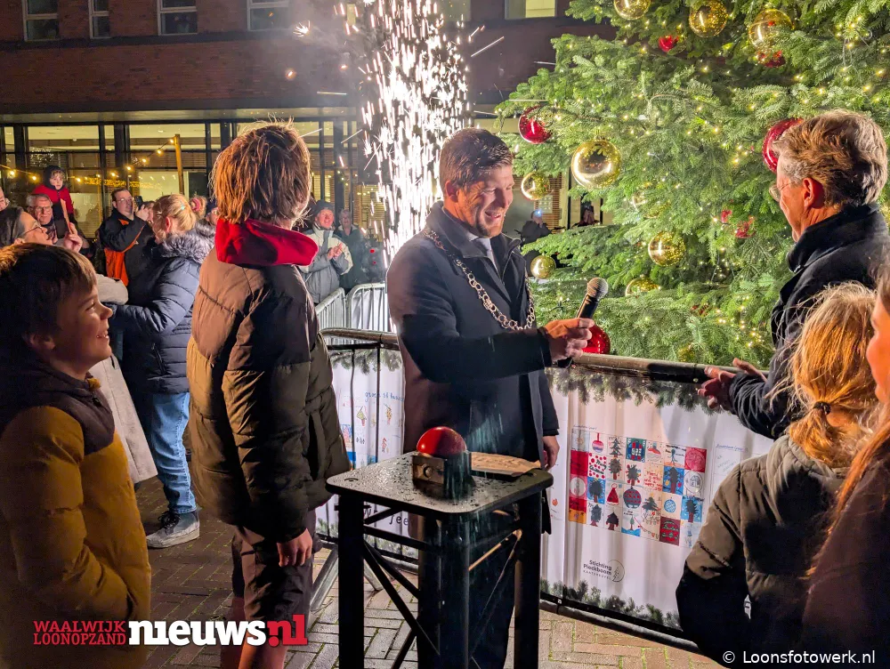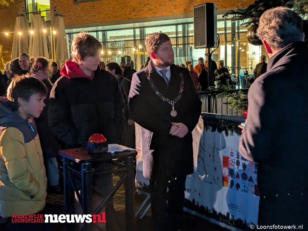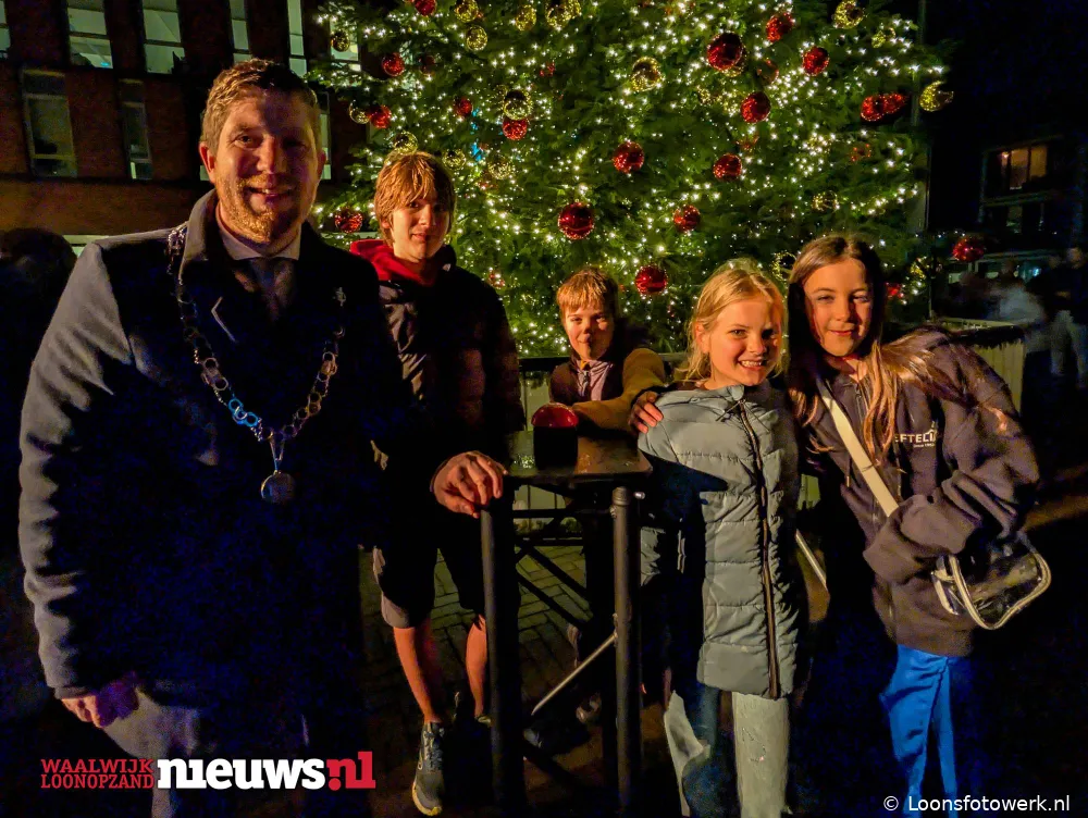 KAATSHEUVEL – De lichtjes van de grote Pieckboom op het Anton Pieckplein zijn maandag feestelijk ontstoken. Burgemeester Davy Jansen en vier leden van de jeugdraad drukten samen op een grote rode knop om de kerstboom te laten schitteren. De boom staat er voor de zevende keer en vormt inmiddels een vaste traditie in Kaatsheuvel.
