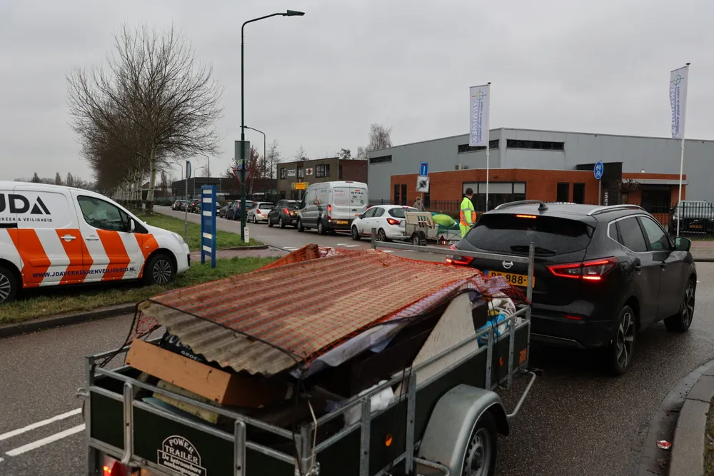 KAATSHEUVEL - Nog snel even naar de stort is er vandaag niet bij. Omdat er vanwege corona maar 6 auto's tegelijk op de verhoging mogen loopt de wachttijd enorm op en dat veroorzaakt een file op de Belgiëstraat.