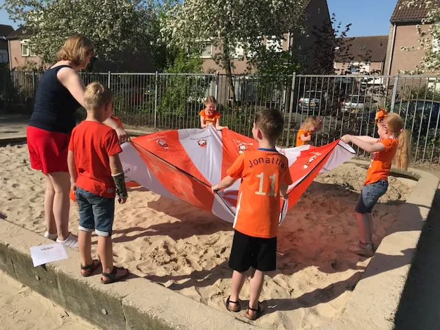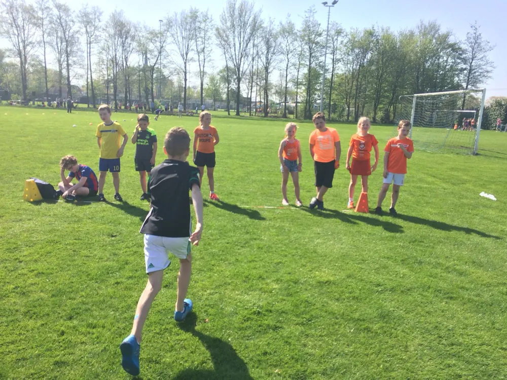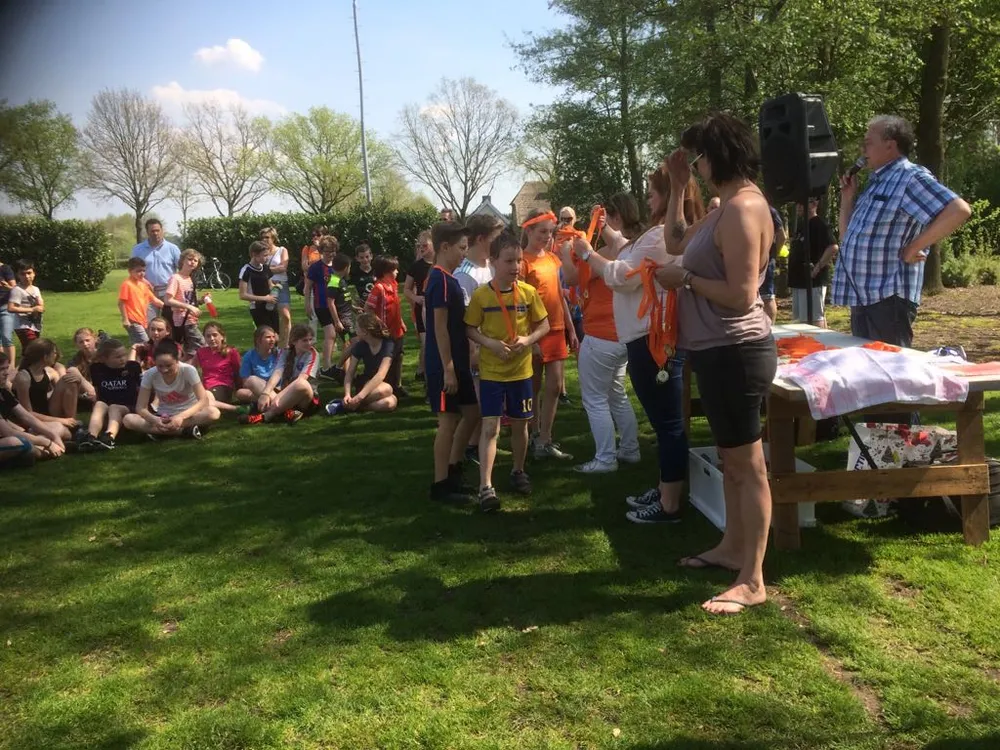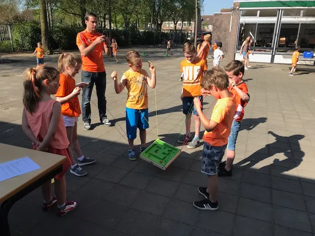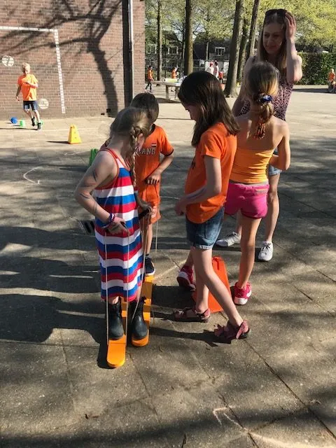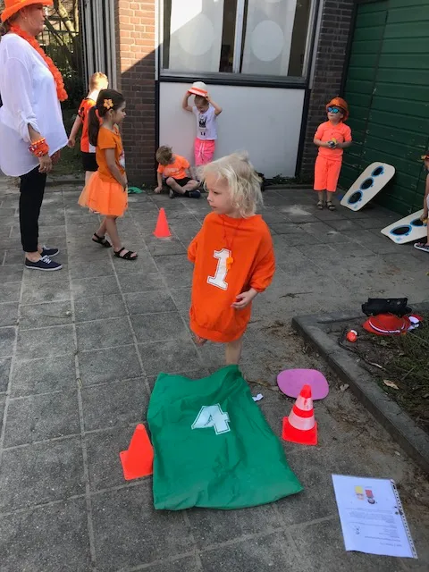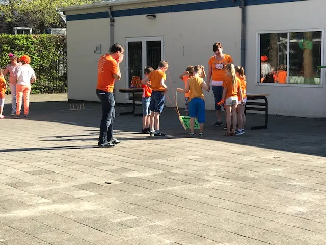 De invulling van de Koningssportdag is natuurlijk het ontbijt, daarna de koningsdans op het liedje van Kinderen voor Kinderen, Fitlala. Dit dansje is door de kinderen meerdere malen geoefend en zit er al goed in. Daarna starten de Koningsspelen. De onderbouw houdt de spelen op de speelplaats rondom de school. De bovenbouw gaat op de fiets naar de sportvelden om daar hun sportieve bijdrage te leveren. Wij willen met de Koningssportdag duidelijk maken dat elk kind elke dag minimaal één uur actief moet bewegen om gezond te blijven. Nou daar zijn wij op deze dag volledig in geslaagd met onze kinderen.