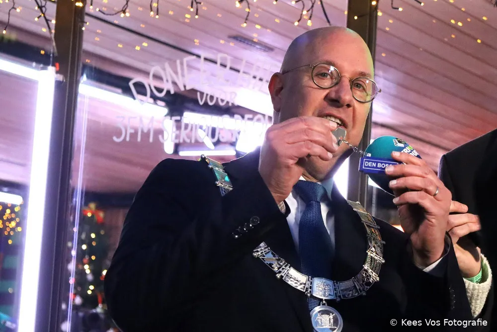 DEN BOSCH – De NPO 3FM-actie Serious Request is donderdagmiddag officieel van start gegaan op de Markt in Den Bosch. Rond 16.45 uur werd het Glazen Huis op slot gedaan, waarmee de actieweek begon waarin geld wordt ingezameld voor Spieren voor Spieren. De dj’s Barend van Deelen, Sophie Hijlkema en Mart Meijer maken tot en met kerstavond dag en nacht radio vanuit het Glazen Huis.
