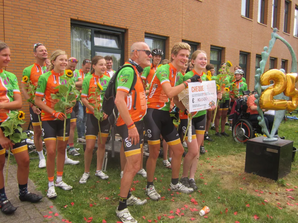 Bij school kregen de twee goede doelen, Finnspiration en “Willem goes Brasil” elk een cheque van €10000,- overhandigd. De 25e editie van Cycle4Children was daarmee een groot succes.