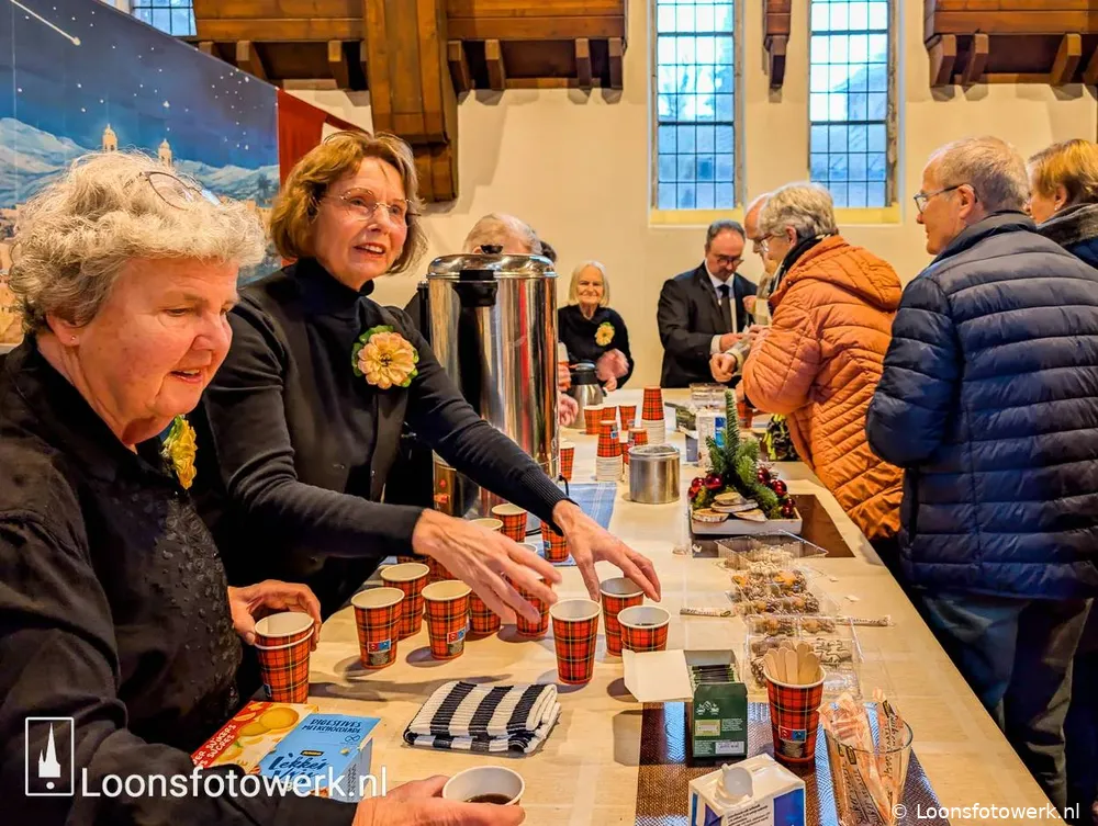 Tijdens de pauze kregen de bezoekers koffie met een koekje aangeboden. Er was ruimte voor ontmoeting en gesprek, wat bijdroeg aan de gemoedelijke sfeer van de middag.