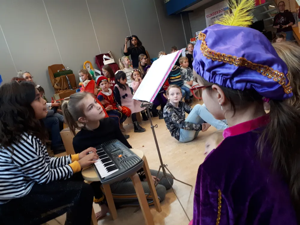Muzikale optredens, een toneelstukje, liedjes en een kwis. Na de gezamenlijke viering gingen de Hooibeestjes (groep 5-6) en Dagpauwogen (groep 7-8) gedichten voorlezen en surprises uitpakken. De jongste leerlingen genoten nog wat langer van het bezoek van Sinterklaas met zijn Pieten in hun eigen klas en mochten een klein cadeautje uitkiezen.
