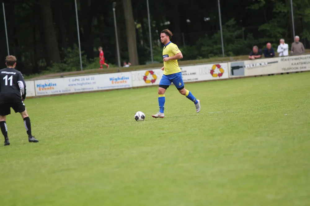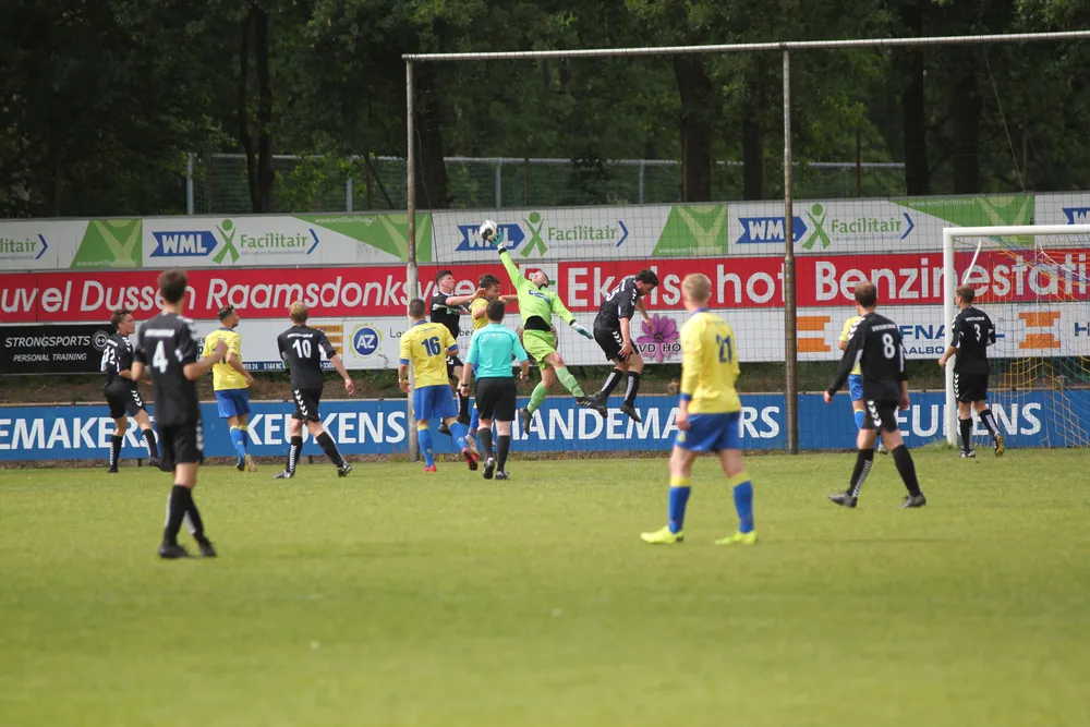 DESK met tien man verder en nog ruim 80 minuten spelen zal de nummer laatst, Wapsik, van het doel van v/d Beukel proberen te houden. Waspik krijgt na het tonen van de rode kaart een vrije trap op randje zestien te nemen. De vrije schop spat hard op de deklat buiten bereik van Carlo v/d Beukel en DESK ruimt op. Met een man meer situatie komt Waspik na een kwartier meer aan voetballen en het spel golft weer op en neer. Na 31 minuten voetballen gaat Rick Vervaart de combinatie aan met Koen van Baardwijk. Koen trekt hem door naar de rechtsbuiten positie op het veld en weet feilloos vleugelspits Djordi Smout te bereiken. Djordi vlamt de bal droog tegen de touwen en zet DESK op een 1-0 voorsprong.