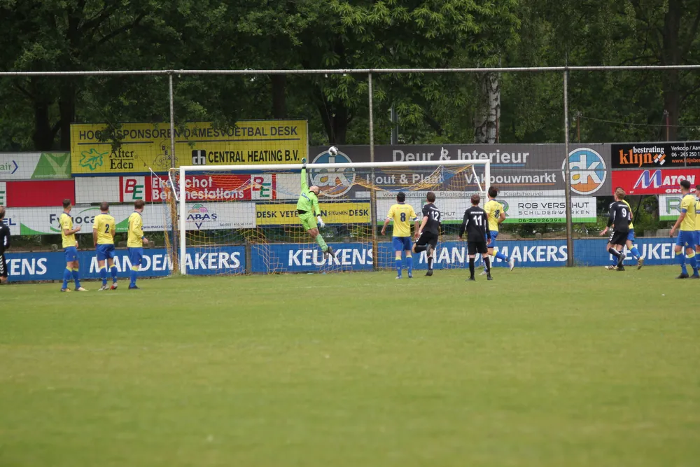 Na rust krijgt Waspik de kans op de gelijkmaker. Door het centrum komt de spits uit Waspik oog in oog met Carlo v/d Beukel die zijn doel verkleind door uit te komen. De aanvaller van Waspik schuift de bal buiten bereik van v/d Beukel naast het doel. Smout in een onmogelijke positie tussen twee man in weet een hoge bal op goal te jassen. De bal gaat over de doelman richting het doel, maar de goalie uit Waspik weet hem met de vingertoppen corner te tikken. De beslissing van de leidsman daarna is hoogst opmerkelijk, een achter bal. Stijn Bergmans verlaat het veld voor Rens van Heijst met nog 25 minuten op de klok. Koen van baardwijk is bijna bij de 2-0, maar de goalie uit Waspik keert de inzet van van Baardwijk en tikt deze corner. Waspik met nog tien minuten op de klok zet een extra aanvaller erbij om rechtstreekse degradatie te voorkomen. Het is een alles-of-niets poging van Waspik en de ploeg zet in op een slotoffensief. Het is de sluitpost van DESK, Carlo v/d Beukel, die zijn doel schoon weet te houden na een gruwelijke poging van Waspik. Een minuut later is het weer Waspik dat de doelman van DESK tot het uiterste dwingt. Opnieuw is het Carlo met een geweldige reflex die een inzet tot corner weet te keren. Met een laatste kans voor Waspik en een geweldige redding van de uitstekend keepende v/d Beukel dit seizoen, wordt de wedstrijd met een 1-0 overwinning voor DESK afgefloten.