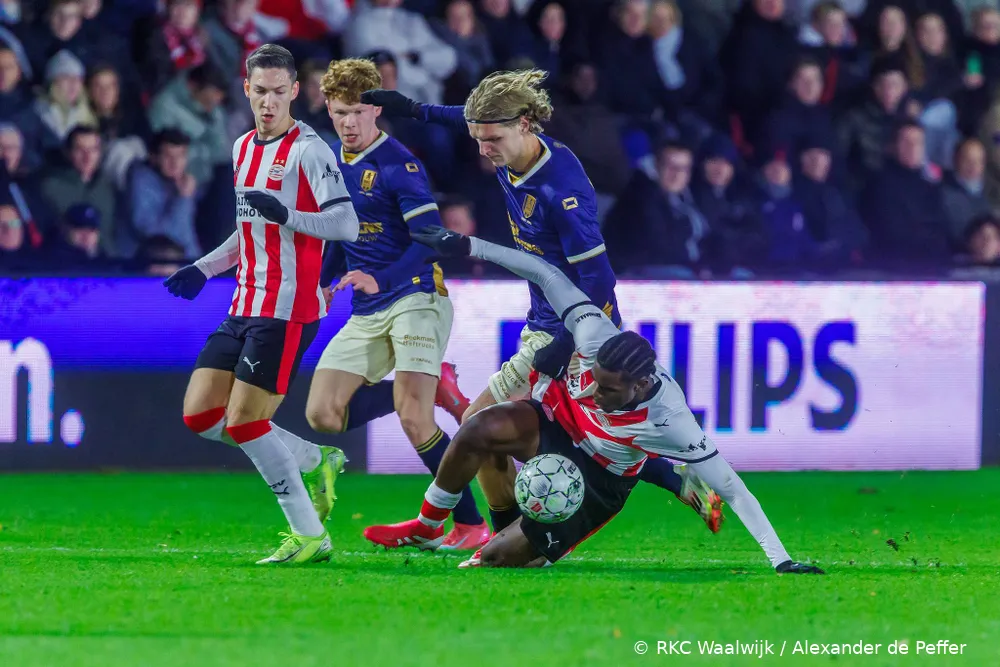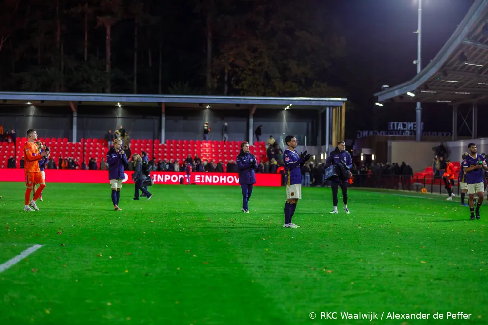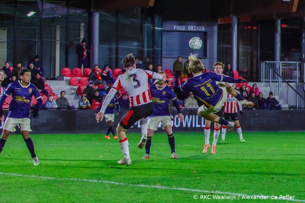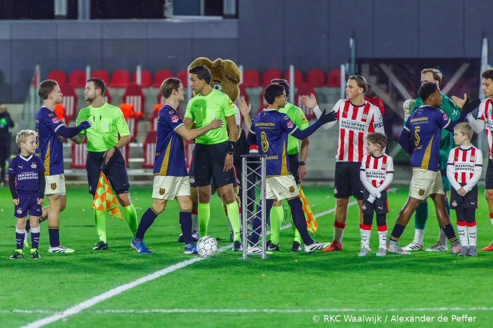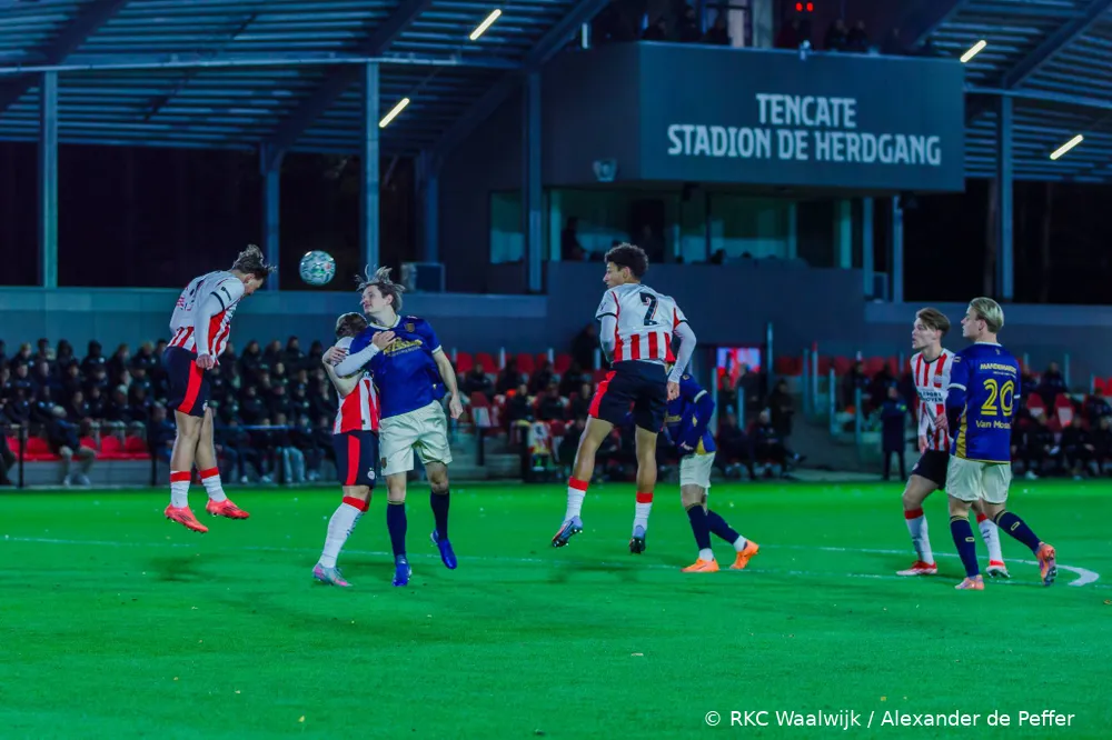 EINDHOVEN – RKC Waalwijk heeft maandagavond een nederlaag geleden op het TenCate De Herdgang Stadion. De ploeg van trainer Sander Duits startte sterk, creëerde meerdere grote kansen en speelde met veel energie, maar ging uiteindelijk met 3-1 ten onder tegen Jong PSV. Een fraaie omhaal van Tim van der Leij in de extra tijd zorgde nog voor een mooi slotmoment, maar kwam te laat voor een resultaat.