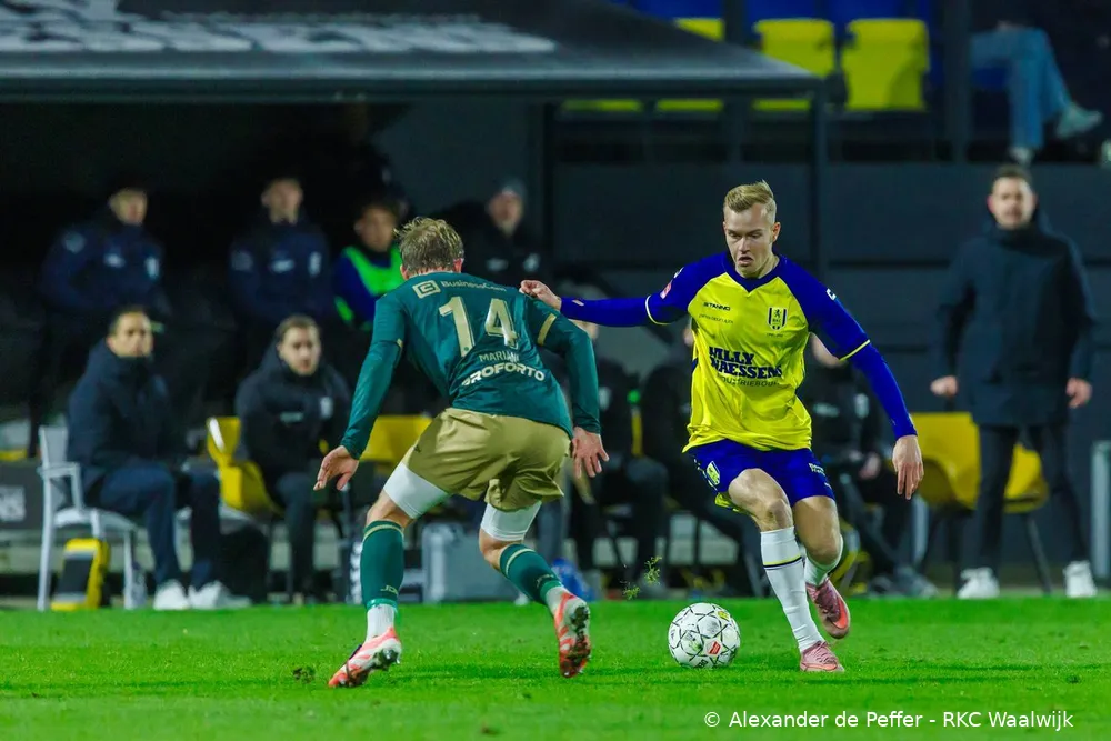 WAALWIJK - Met verzorgd spel, veel dreiging en twee doelpunten speelde RKC Waalwijk zichzelf vrijdagavond naar een 2-0 overwinning tegen TOP Oss. Jesper Uneken en Tim van der Leij maakten de goals in de sfeervolle Brabantse derby.Openingsfase vol kansenRKC Waalwijk begon fel aan de wedstrijd. Al in de tweede minuut werd Daniel van Kaam net buiten het strafschopgebied in de rug geduwd, wat een vrije trap opleverde. Die leverde geen direct gevaar op, maar zorgde wel voor de eerste corner van de avond.