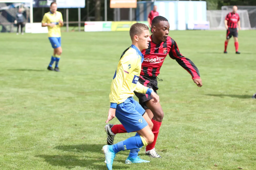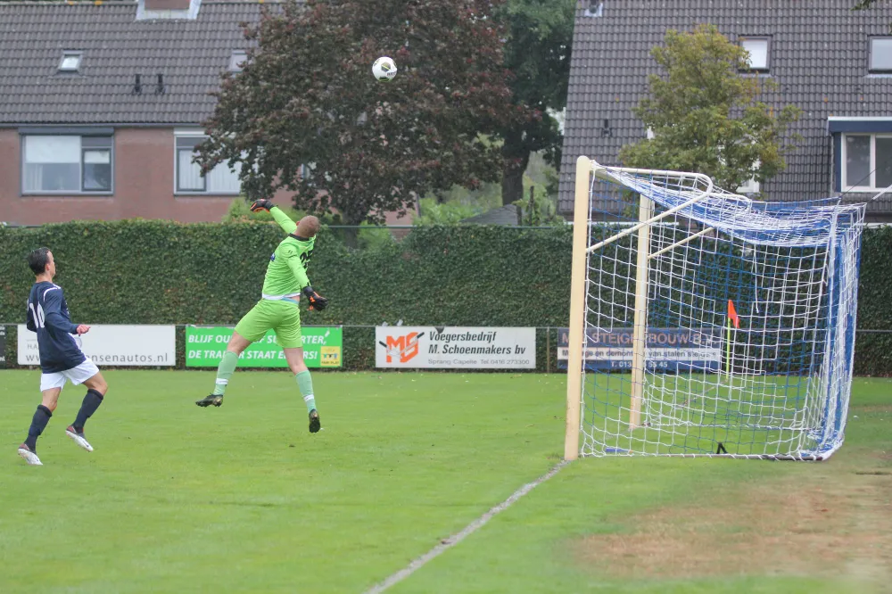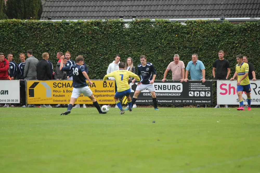 Het geroutineerde Berkdijk houdt DESK prima in de tang en valt zo nu en dan ook aan. Het is dat Thom Koot wat Corona-kilootjes aangekomen is en de snelheid van een Joep v/d Hurk mist, anders was de tandem met Jorg Snoeren en Joske N'temo dodelijk geweest. Een gruwelijke kans voor de zoon van de trainer Toon Stokkermans die bij DESK in de aanval speelt, hullie Sven. Stijn Hamers die Roy Trommelen het nakijken geeft aan de rechterkant van het veld, de bal prima terug legt op de inkomende Sven Stokkermans, die de bal snoeihard op het Berkdijkse doel peert.