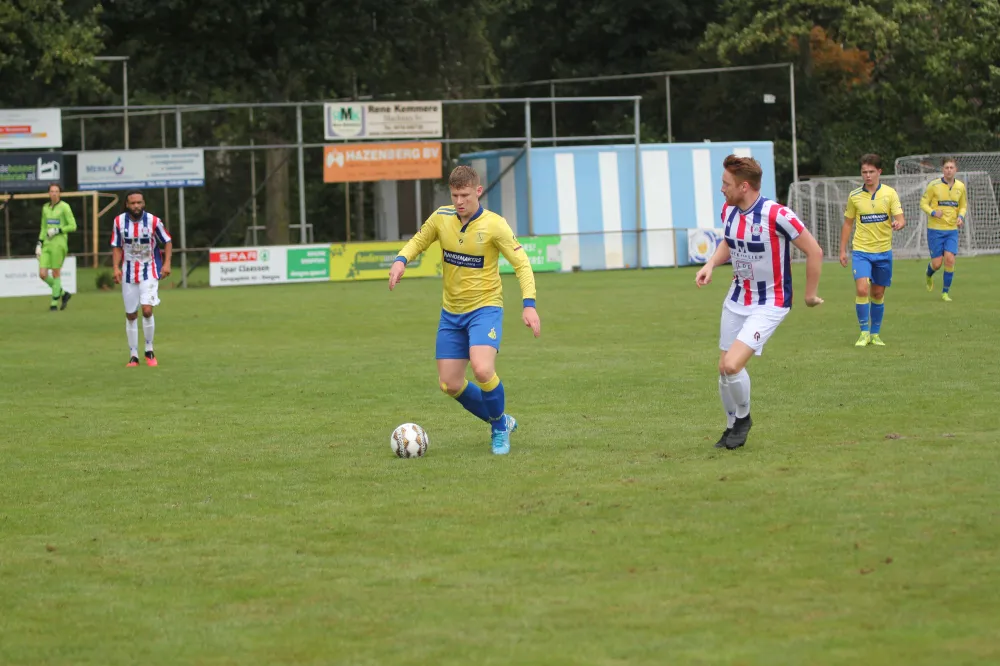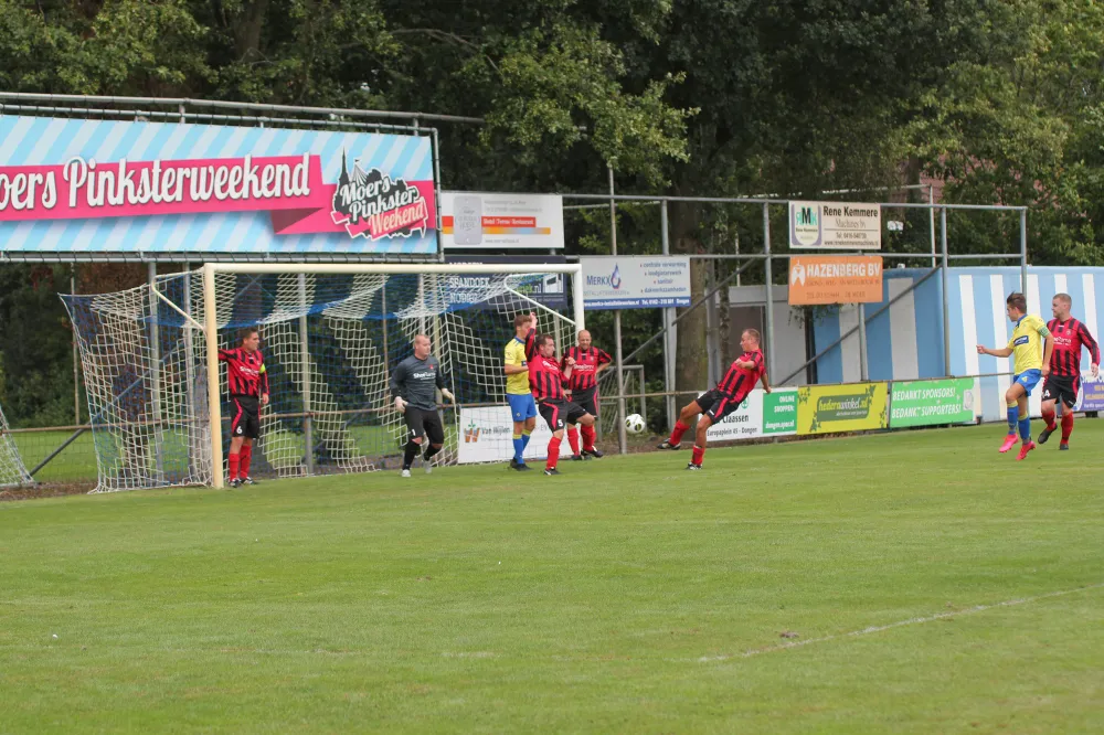 Berkdijk mag aanleggen vanaf 11 meter. Het is Ricky Maton die vanaf 11 meter de score tegen Blauw-Wit '81 opent. Zijn pingel wordt genadeloos hard en hoog binnen gepoeierd. Van de voorsprong kan niet lang genoten worden, als Blauw-Wit een pegel op het Rood-Zwarte doel vuurt. Het van richting veranderde schot verdwijnt achter doelman Trommelen en de stand is weer gelijk. Even later trekt Blauw-Wit door en zet het de 2-1 op het scorebord.