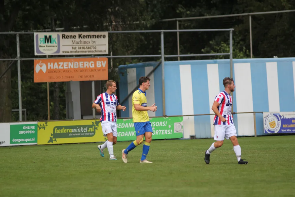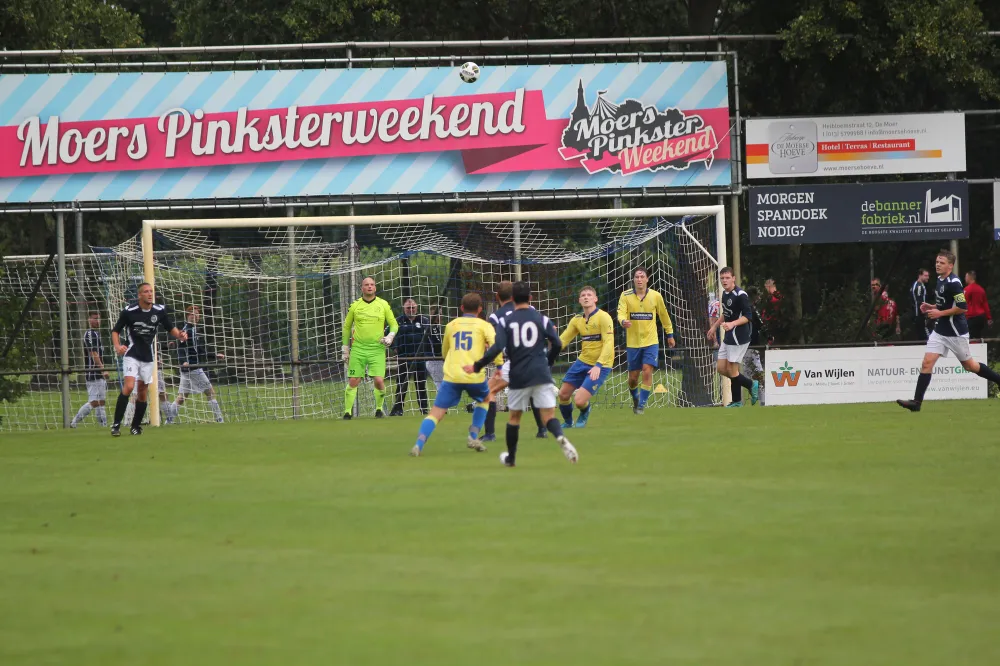 Het is Blauw-Wit dat in de beginfase de ploeg uit Kaatsheuvel Zuid achteruit drukt. Berkdijk houdt goed stand en probeert de aanval te zoeken met lange ballen op Joep v/d Hurk. Een heerlijke aanval over rechts via Davey van Ark zorgt er voor dat de goalie van De Moer zich niet hoeft te vervelen. Na het nemen van een corner voor Berkdijk is het de scheidsrechter die de bal op de stip legt.
