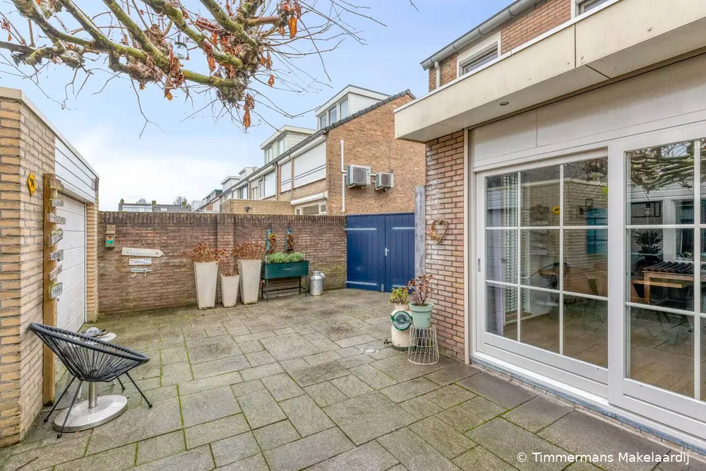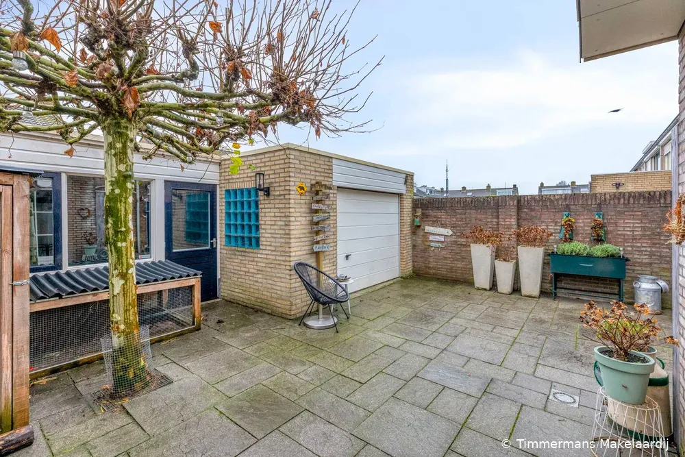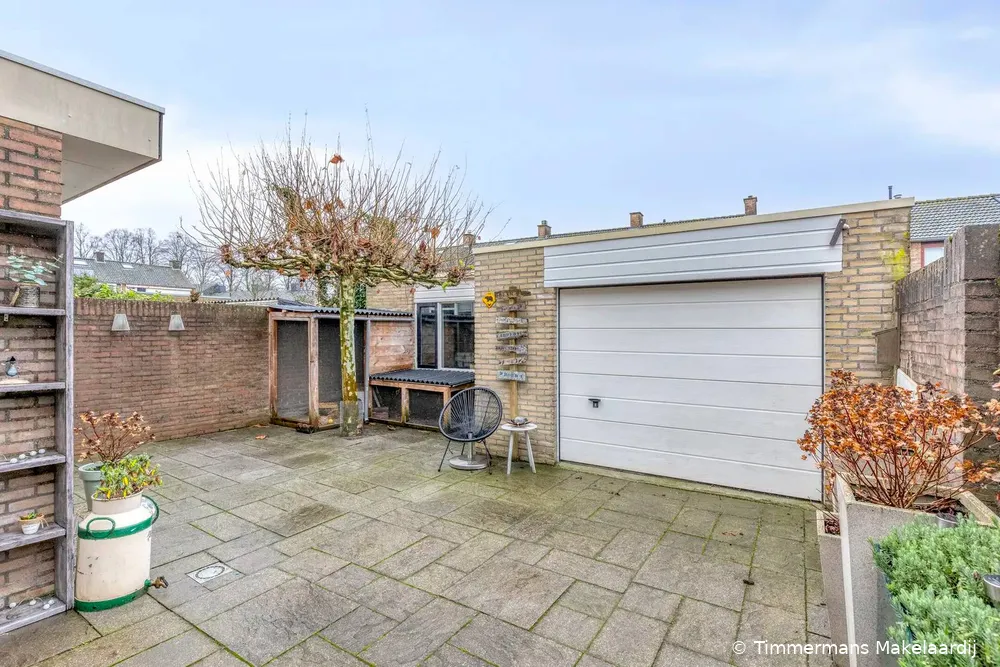 Tuin: De achtertuin is gunstig gelegen op het zonnige zuiden, volledig bestraat en onderhoudsvriendelijk ingericht. Vanuit de tuin is er toegang tot de vrijstaand gelegen garage, voorzien van een elektrisch bedienbare garagedeur (vernieuwd), aansluitend een berging met aansluitingen voor wasapparatuur en uitstortgootsteen. Het perceel is tevens bereikbaar via een dubbele poort aan de rechterzijde van de woning, welke recent is vernieuwd.